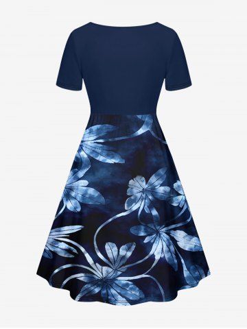 Robes Graphiques > Plus Size Flowers Leaf Tie Dye Print Cinched Hawaii Dress
