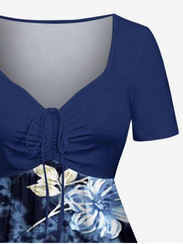 Plus Size Flowers Leaf Tie Dye Print Cinched Hawaii Dress - Bleu Profond - S