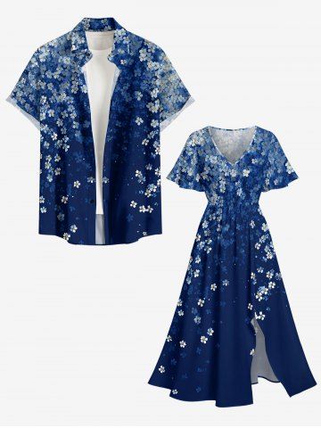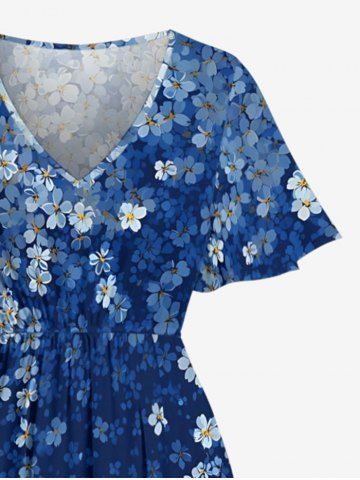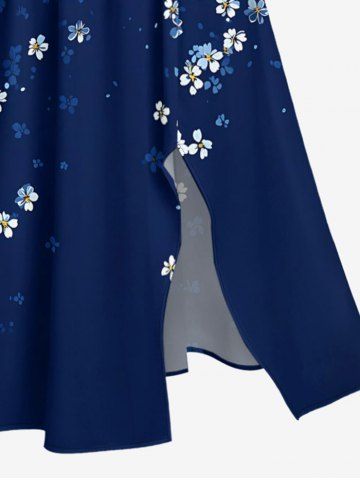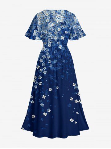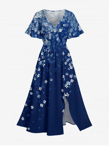 Plus Size Flowers Ombre Print Split Hawaii Midi Dress - Bleu Profond - 5x