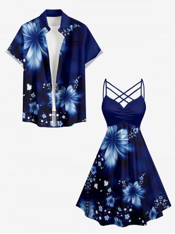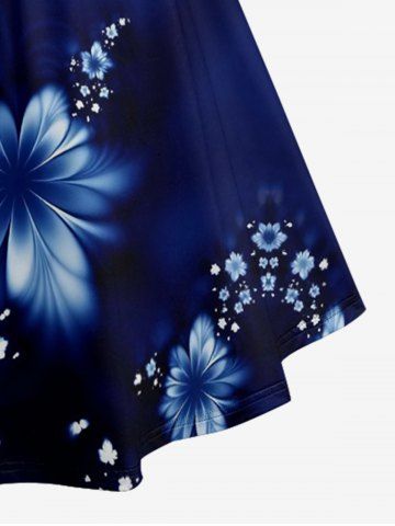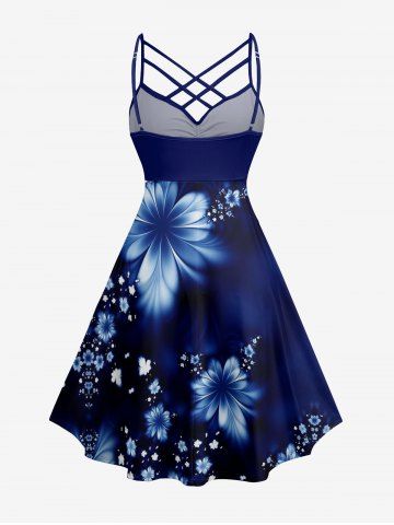 Plus Size Flowers Print Ruched Lattice Crisscross Straps Hawaii Dress - Bleu Profond - 5x