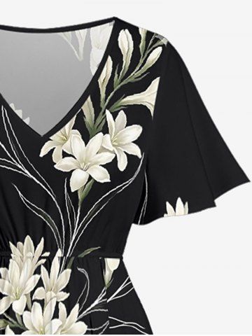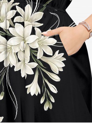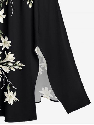 Plus Size Flowers Print Split Hawaii Midi Dress - Noir - Noir