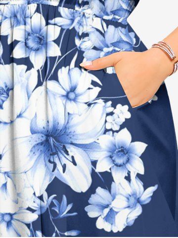 Plus Size Flowers Print Split Hawaii Midi Dress - Cadetblue - 5x