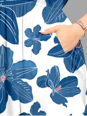 Robes Graphiques > Plus Size Flowers Print Split Hawaii Midi Dress