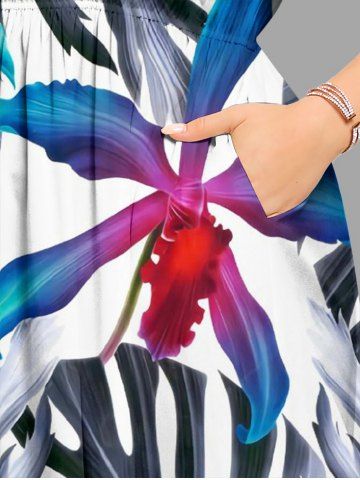 Robes Graphiques > Plus Size Flowers Tropical Leaf Print Split Hawaii Midi Dress