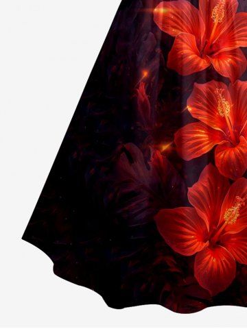 Robes Graphiques > Plus Size Glitter Hibiscus Flower Print Hawaii Ruched Crisscross A Line Dress