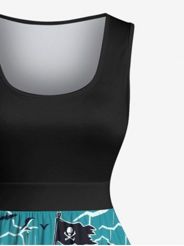Robes Graphiques > Plus Size Halloween Skulls Sail Boat Sea Waves Cloud Cruise Print 1950s Vintage Dress