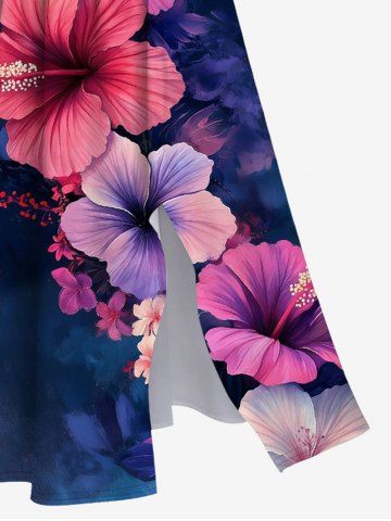 Robes Graphiques > Plus Size Hibiscus Flower Print Split Hawaii Midi Dress
