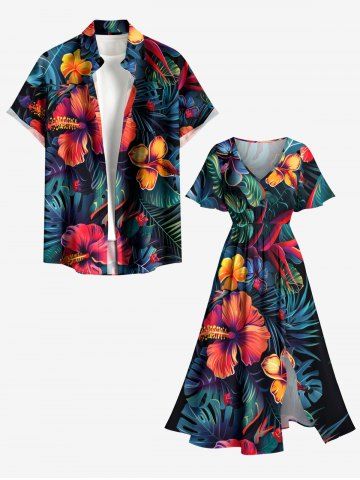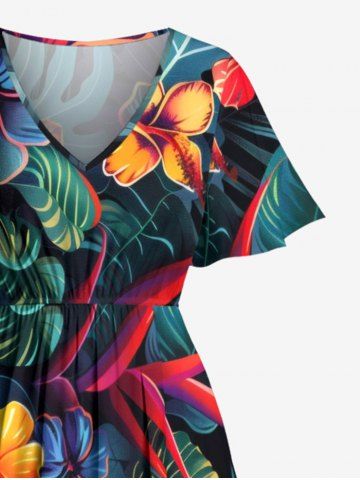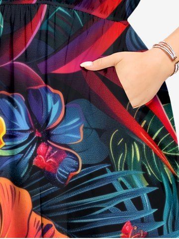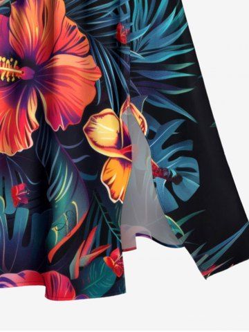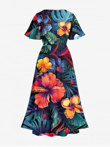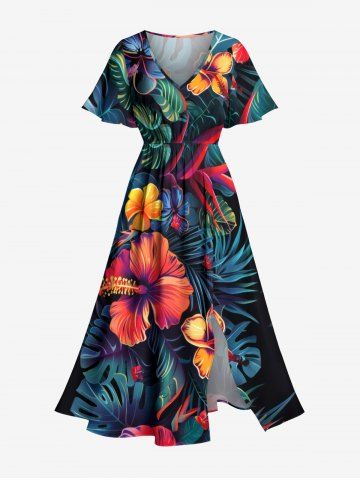 Robes Graphiques > Plus Size Hibiscus Flower Tropical Leaf Print Split Hawaii Midi Dress