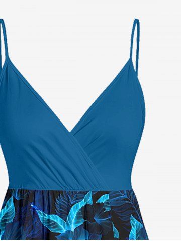 Plus Size Hibiscus Flowers Leaf Print Surplice Hawaii Cami Dress - Bleu De Minuit - S