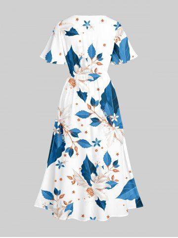 Robes Graphiques > Plus Size Leaf Flower Print Hawaii Split Pocket A Line Midi Dress