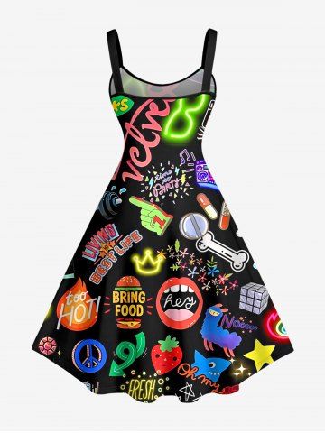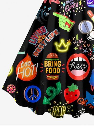 Plus Size Neon Funny Letters Music Print Hawaii A Line Dress - Noir - Noir