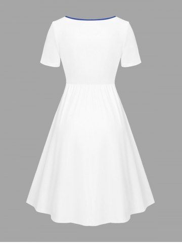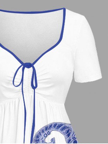 Plus Size Octopus Flowers Print Cinched Hawaii Dress - Blanc - Blanc