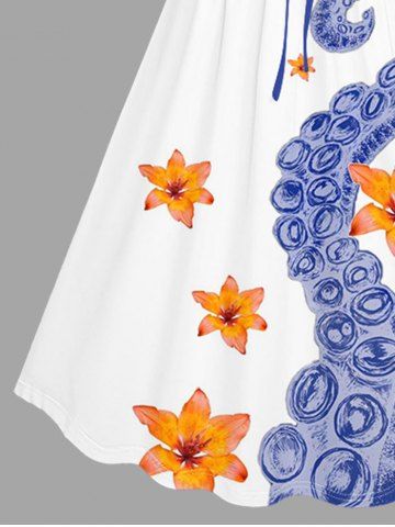 Robes Graphiques > Plus Size Octopus Flowers Print Cinched Hawaii Dress