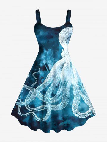 Robes Graphiques > Plus Size Octopus Ombre Sea Print Hawaii Tank Dress
