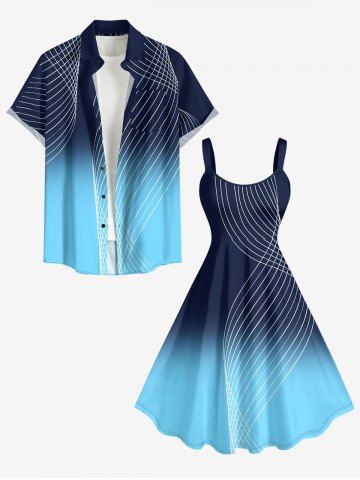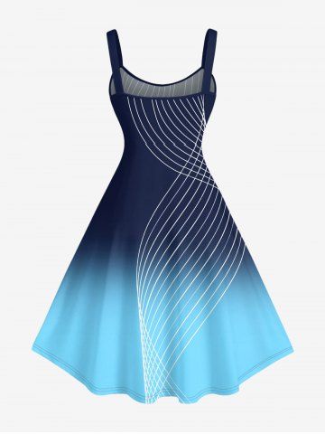 Plus Size Ombre Curve Plaid Print Tank Dress - Bleu Profond - 3x