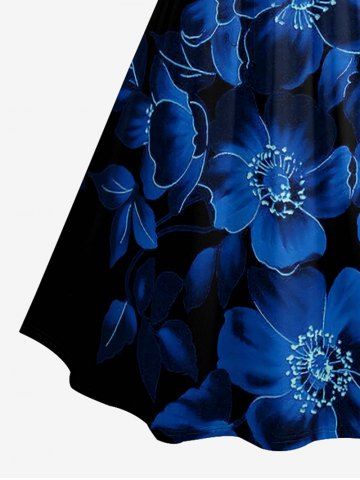 Plus Size Ombre Flower Print Hawaii Ruched Crisscross Strappy A Line Dress - Bleu Profond - 3x