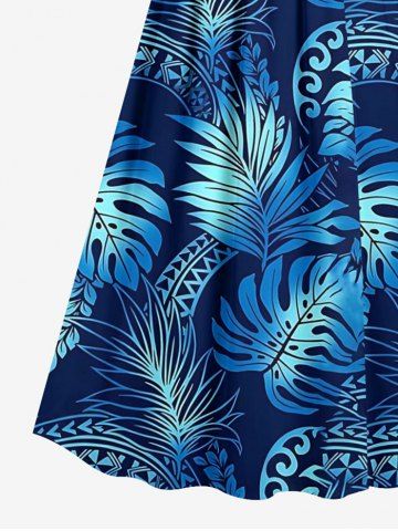 Plus Size Ombre Tropical Leaf Ethnic Print Hawaii Surplice A Line Cami Dress - Bleu Marine - Bleu Marin