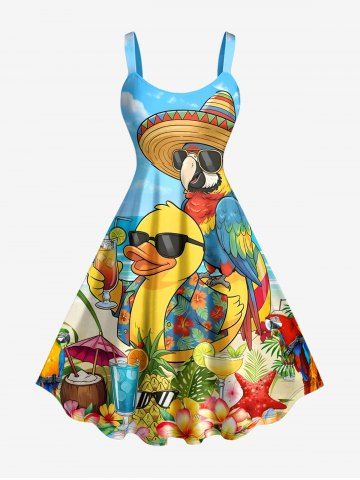 Robes Graphiques > Plus Size Parrot Duck Pineapple Fruit Juice Flowers Print Hawaii Tank Dress