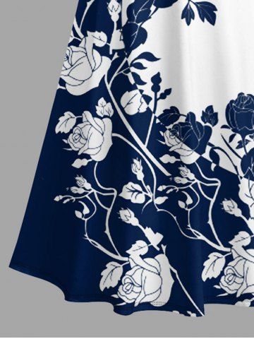 Plus Size Rose Flower Colorblock Print Cold Shoulder Crisscross Hawaii Maxi Dress - Bleu Profond - 2x