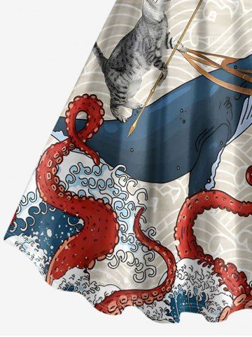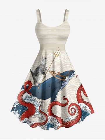 Robes Graphiques > Plus Size Shark Cat Octopus Sea Waves Print Hawaii A Line Dress
