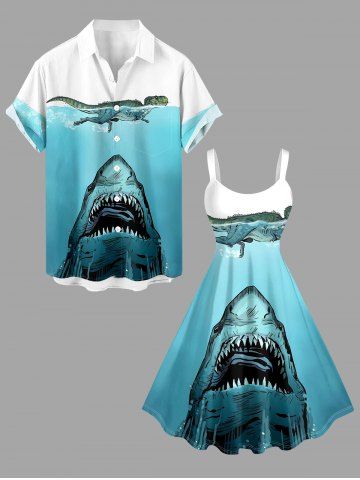 Plus Size Shark Dinosaur Sea Print Hawaii A Line Dress - Pers - 4x
