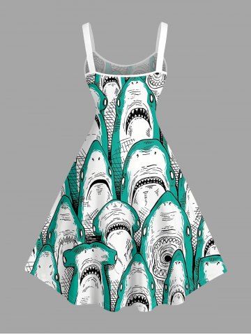 Plus Size Shark Print Hawaii A Line Dress - Émeraude - 3x
