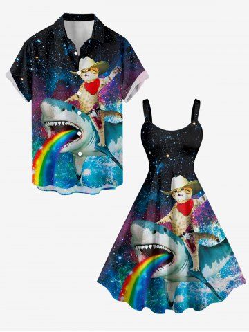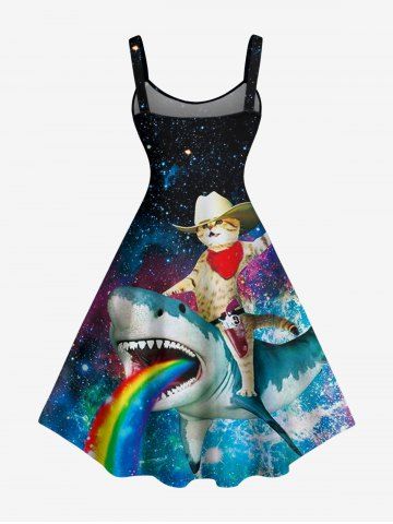 Plus Size Shark Rainbow Cat Sea Galaxy Print Hawaii A Line Dress - Pers - 2x