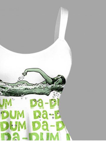 Plus Size Shark Swimmer Letters Print Hawaii Tank Dress - Vert - Vert