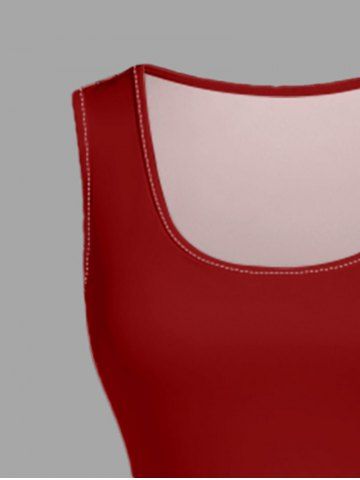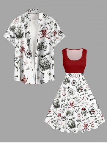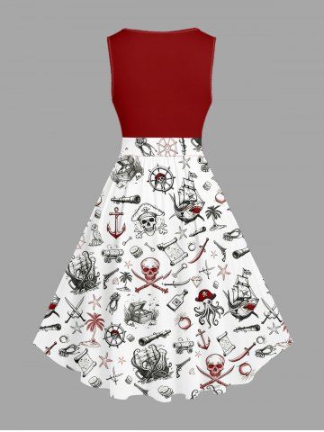 Plus Size Skull Coconut Tree Ship Rudder Starfish Cruise Print 1950s Hawaii Vintage Dress - Rouge - Rouge