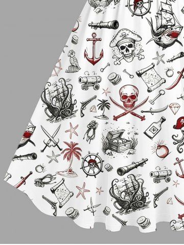 Robes Graphiques > Plus Size Skull Coconut Tree Ship Rudder Starfish Cruise Print 1950s Hawaii Vintage Dress