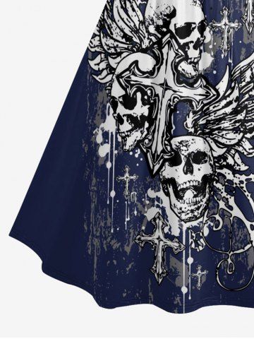 Plus Size Skull Wings Cross Print Ruched Lattice Crisscross Straps Dress - Bleu Profond - 2x