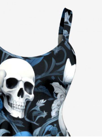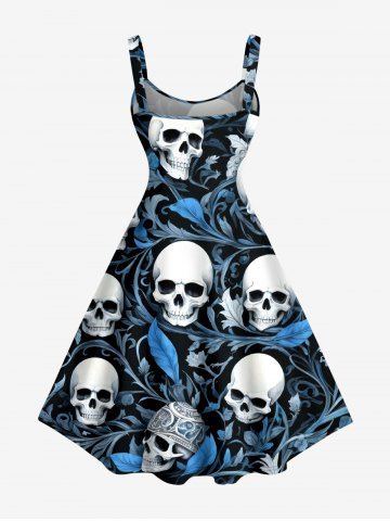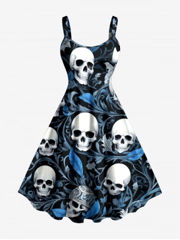 Robes Graphiques > Plus Size Skulls Flower Leaf Print Hawaii Tank Dress