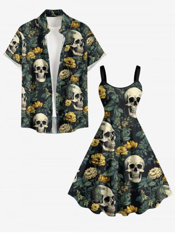 Robes Graphiques > Plus Size Skulls Flowers Leaf Print Hawaii Tank Dress