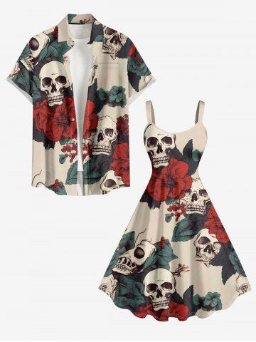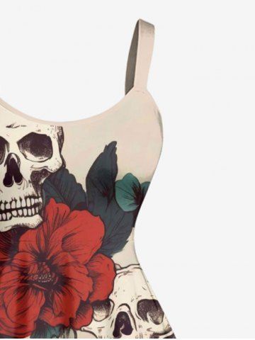 Plus Size Skulls Leaf Flower Print Hawaii A Line Dress - Café Lumière - L