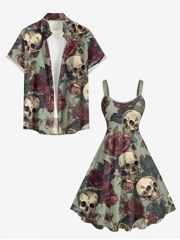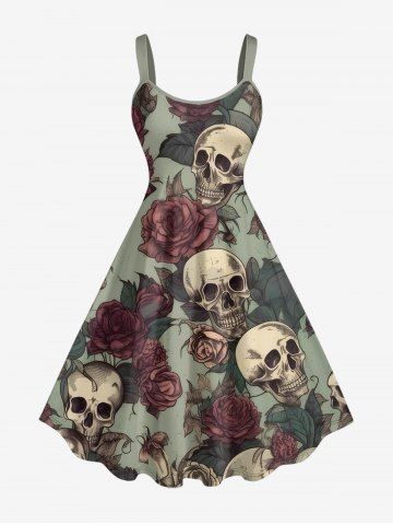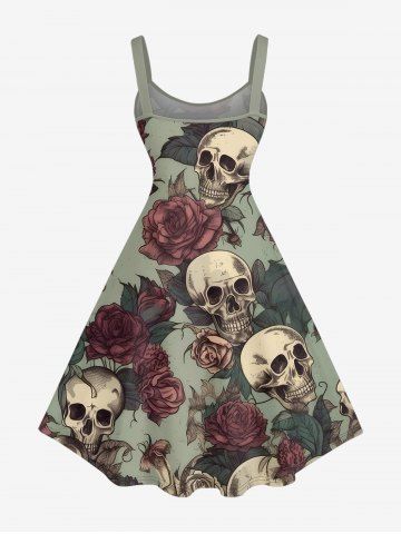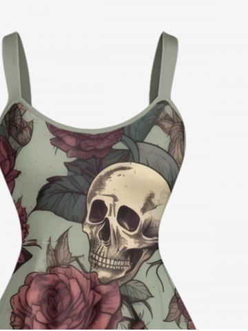 Robes Graphiques > Plus Size Skulls Rose Flower Leaf Print Hawaii Tank Dress