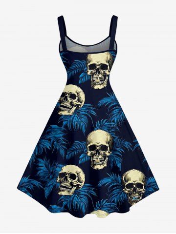 Robes Graphiques > Plus Size Skulls Tropical Leaf Print Hawaii Tank Dress