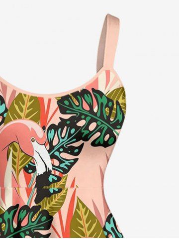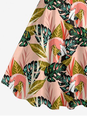 Plus Size Tropical Leaf Flamingo Print Hawaii A Line Dress - Rose - Rose