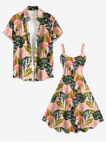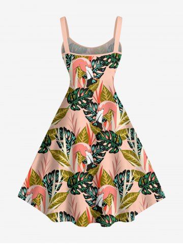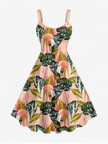Robes Graphiques > Plus Size Tropical Leaf Flamingo Print Hawaii A Line Dress