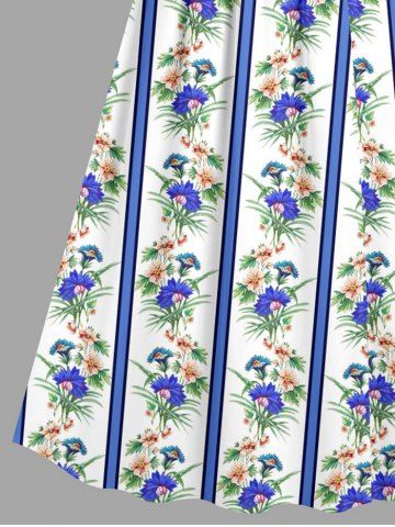 Robes Graphiques > Plus Size Tropical Leaf Flower Striped Print Hawaii Surplice A Line Cami Dress