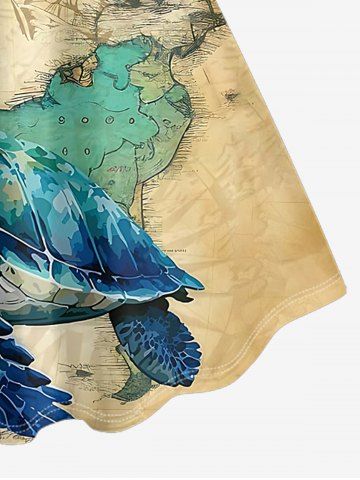Plus Size Turtle Map Print Hawaii Sea Creatures A Line Dress - Café Lumière - Xs