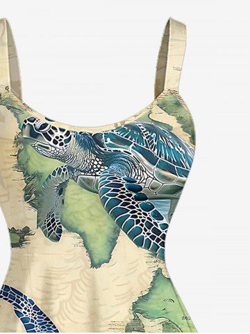 Plus Size Turtle Map Print Hawaii Sea Creatures A Line Dress - Café Lumière - 3x
