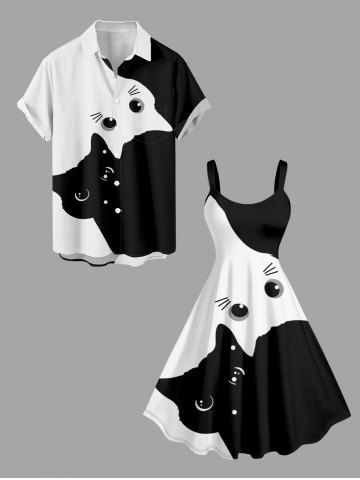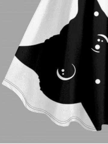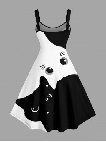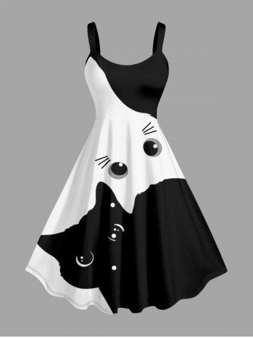 Plus Size Two Tone Cat Print A Line Dress - Blanc - Blanc