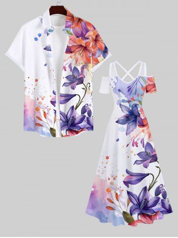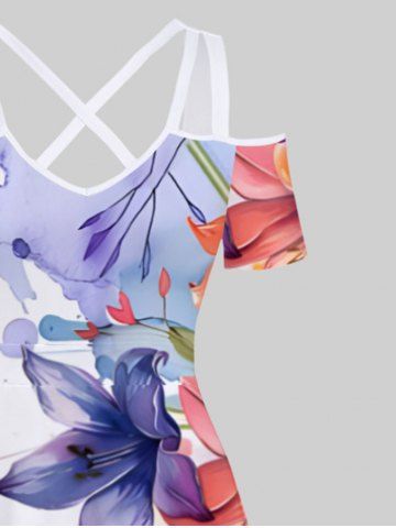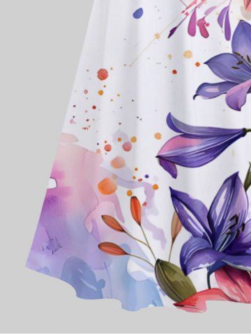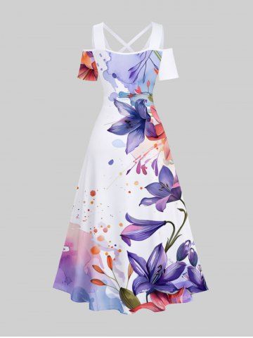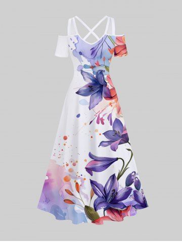 Robes Graphiques > Plus Size Watercolor Lily Flower Painting Splatter Print Hawaii Ombre Crisscross A Line Maxi Dress