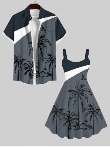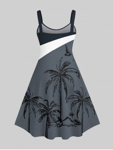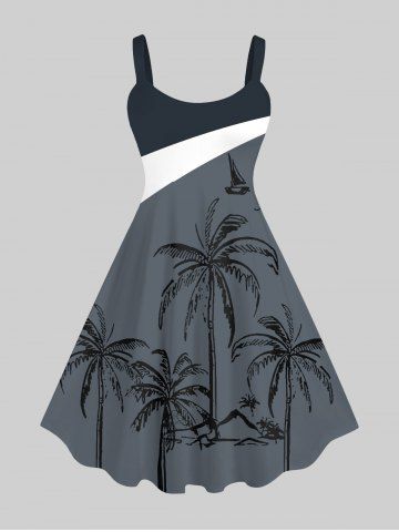 Robes Graphiques > Robe à Bretelle Arbre Noix de Coco Imprimé en Blocs de Couleurs de Grande Taille