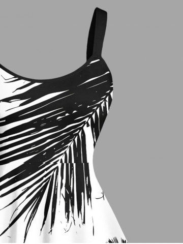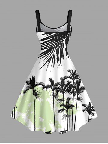 Robes Graphiques > Robe à Bretelle Feuille Tropicale et Arbre de Noix de Coco Imprimés de Grande Taille