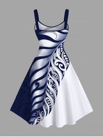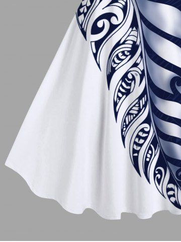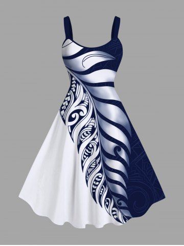 Robe à Bretelle Feuille Tropicale Imprimée en Blocs de Couleurs de Grande Taille - Blanc - Blanc