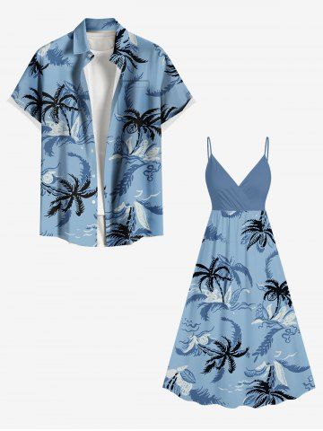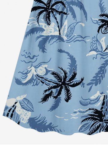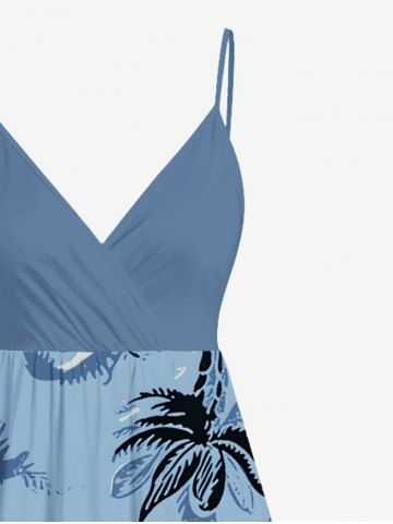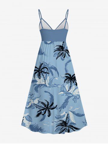 Robe à bretelles croisée trapèze imprimée de cocotiers et de vagues, grande taille, style hawaïen - Bleu Ciel - Bleu Ciel