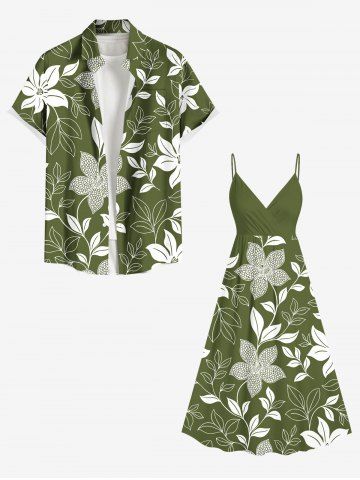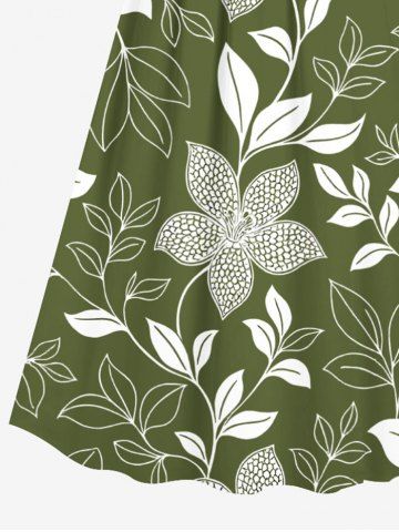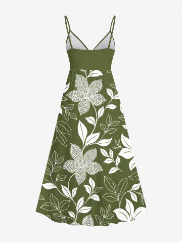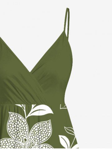 Robe à bretelles croisées à imprimé floral et feuilles grande taille, style hawaïen - Vert - Vert