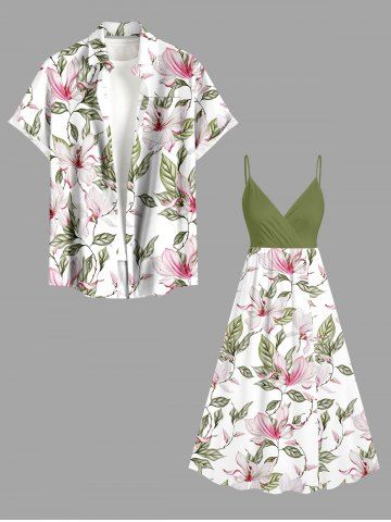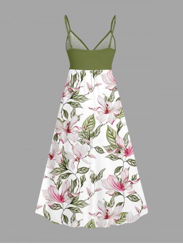 Robe à bretelles croisées à imprimé floral et feuilles grande taille, style hawaïen - Vert Clair - Vert Clair