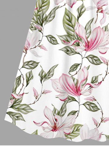 Robes Graphiques > Robe à bretelles croisées à imprimé floral et feuilles grande taille, style hawaïen